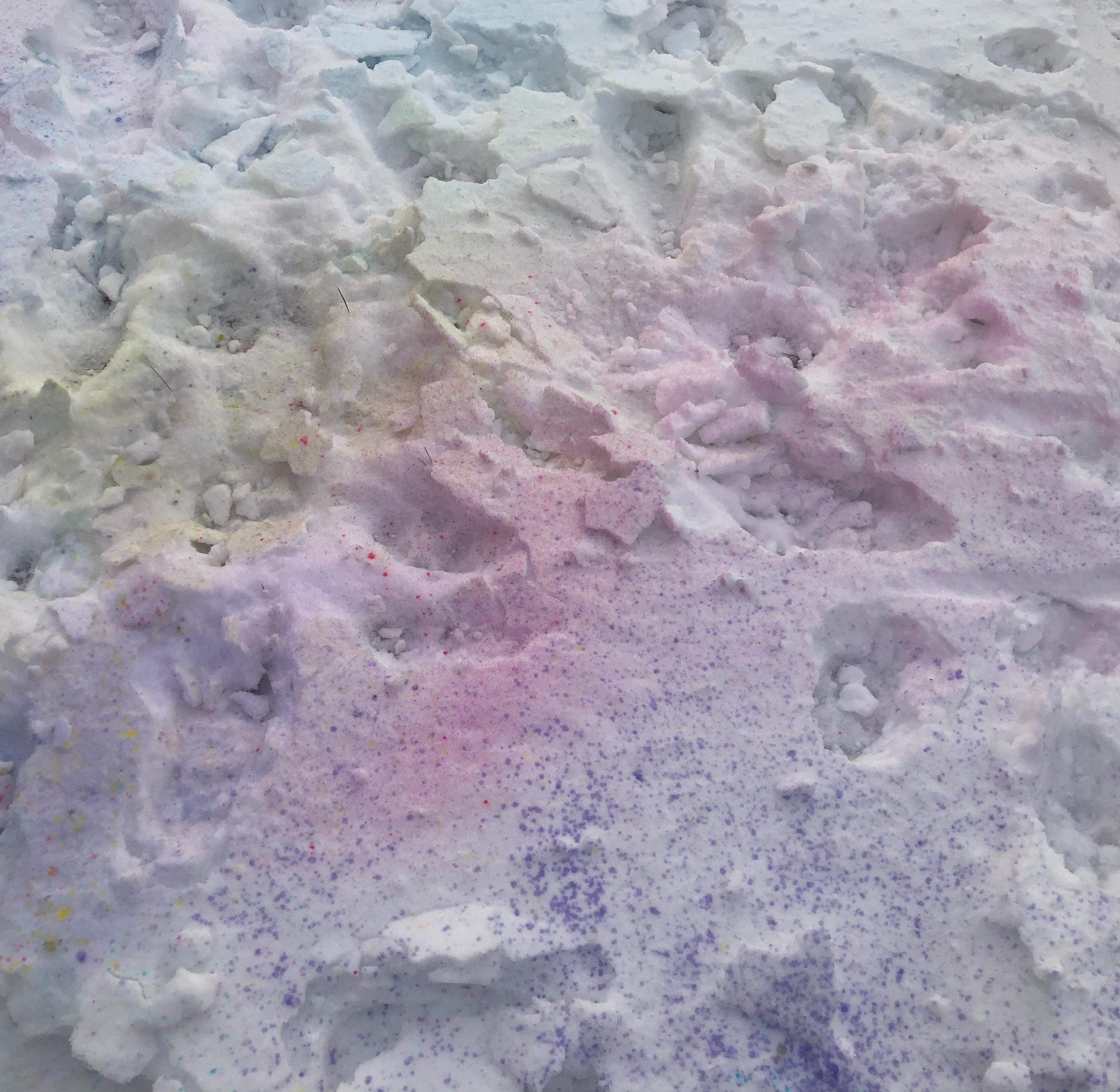 Than you add water and food colouring of your choice. And that is it. I had some really bright colours from Wiltons and I loved how they showed on the snow.