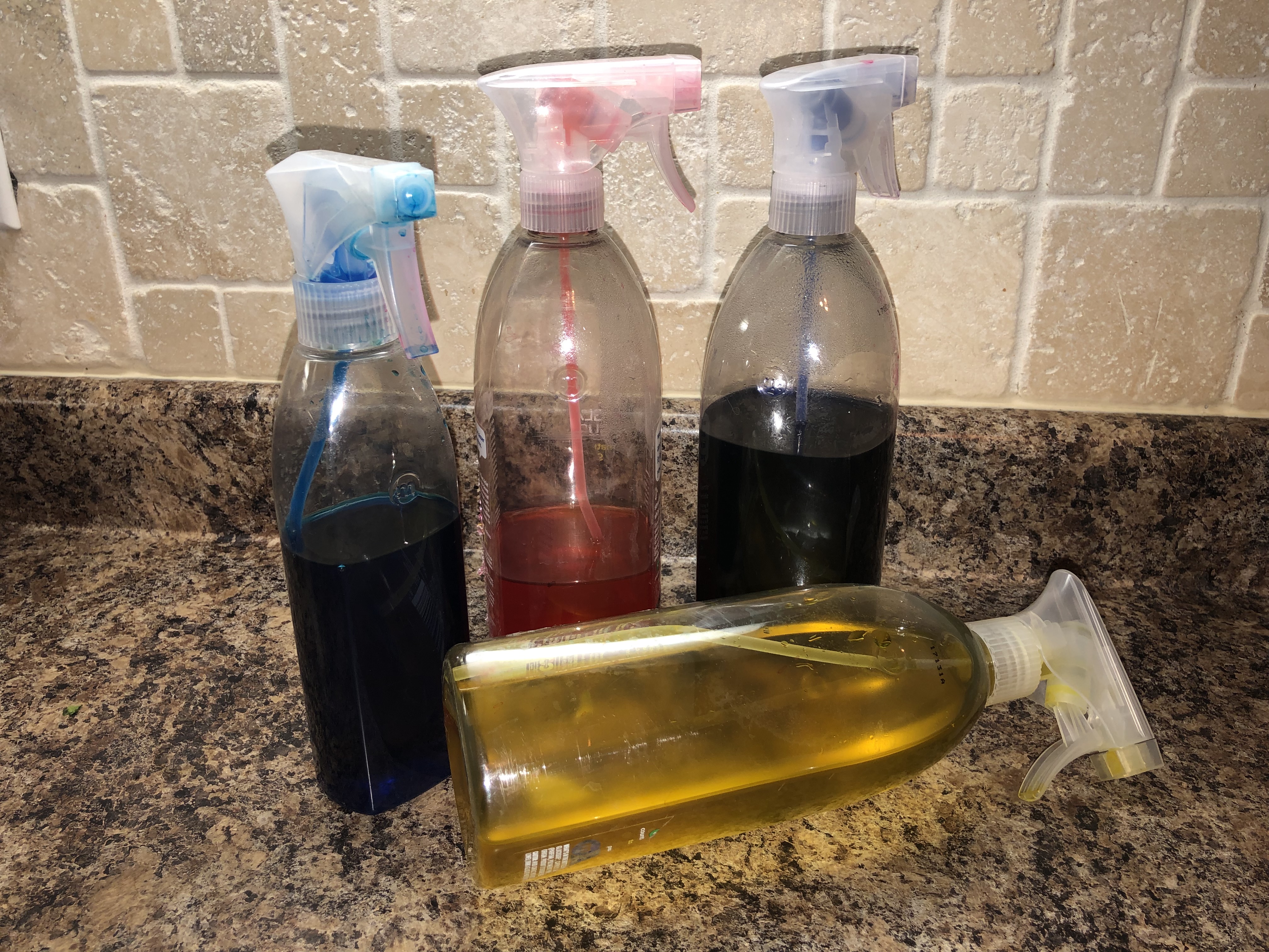 I have cleaned out some of the plastic bottles I had around the house or you can get some new ones from the dollar store. I just didn’t have time to go so I used what I had. If you are cleaning ones you have you want to make sure they are very well cleaned out and the sprayer is cleaned out too.