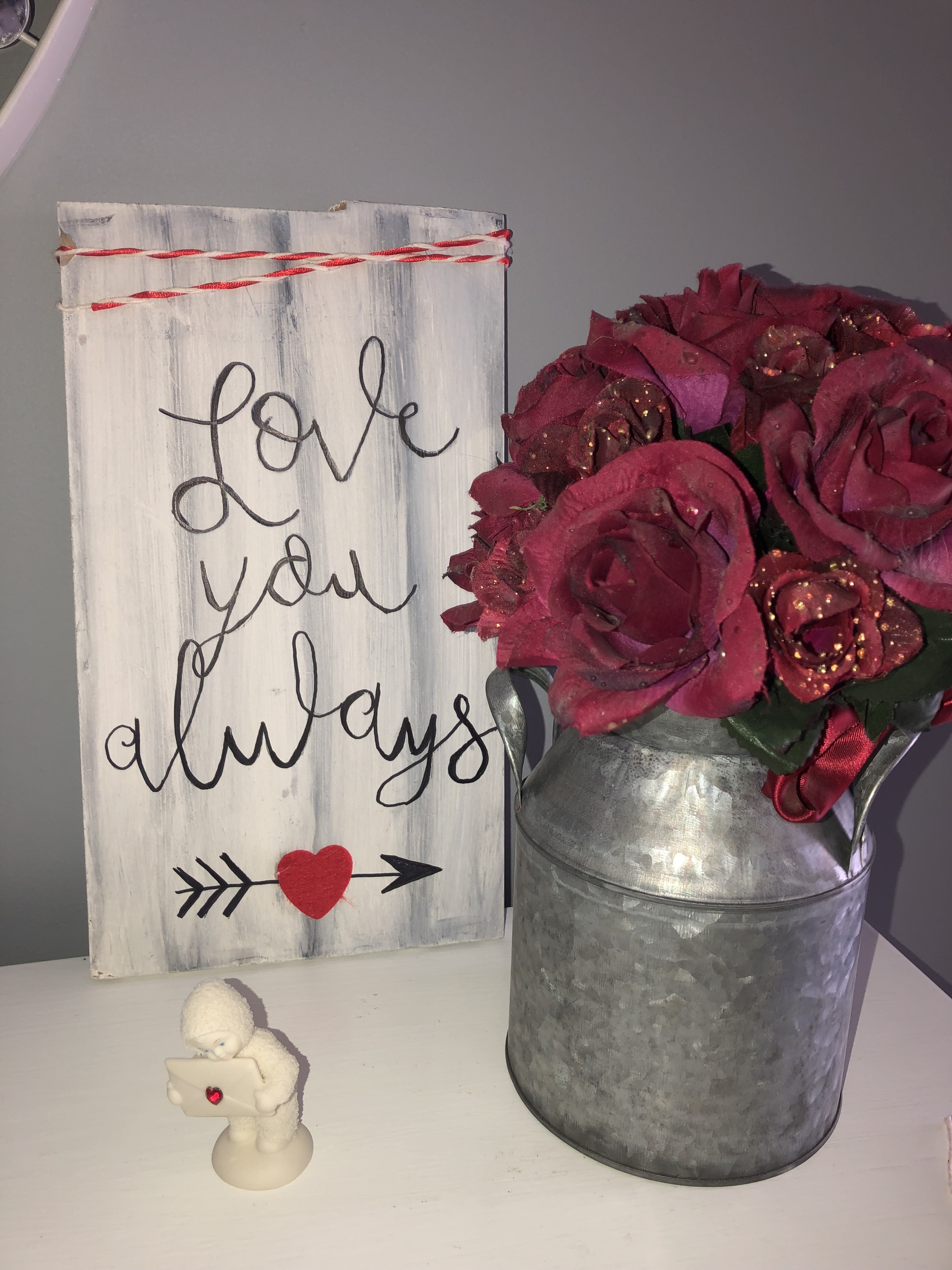 These are just a few things that I did to decorate for Valentines Day. You don’t need much or spend lot of money to make a room feel warm and rustic. I call my decor Rustic Farmhouse Valentines Day Decor.
