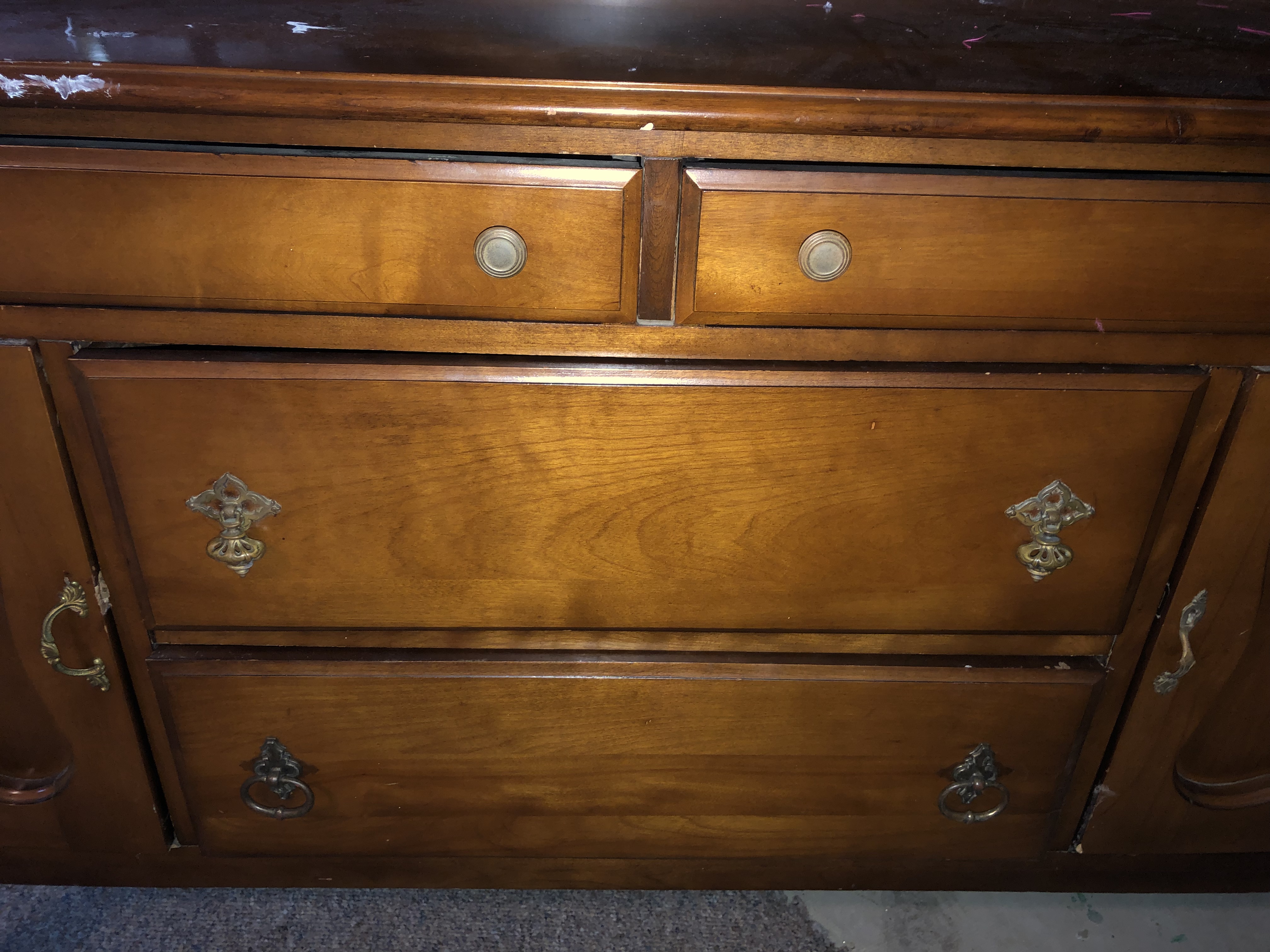 Once it was done drying or curing I reinstalled the original nobs and pull to the doors and drawers.