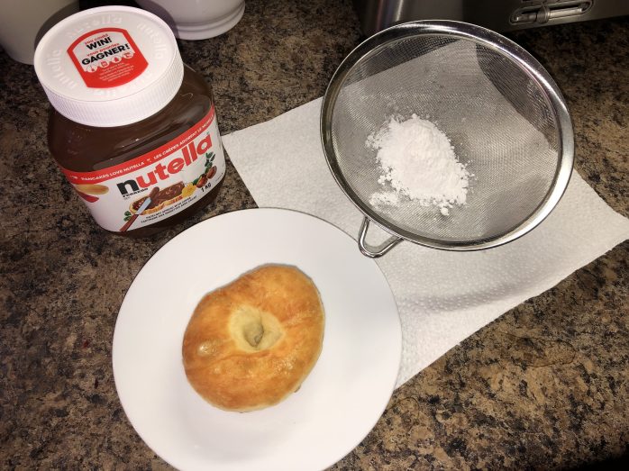 Once they had a chance to cool down a bit add Nutella or jam and sprinkle them with icing sugar.