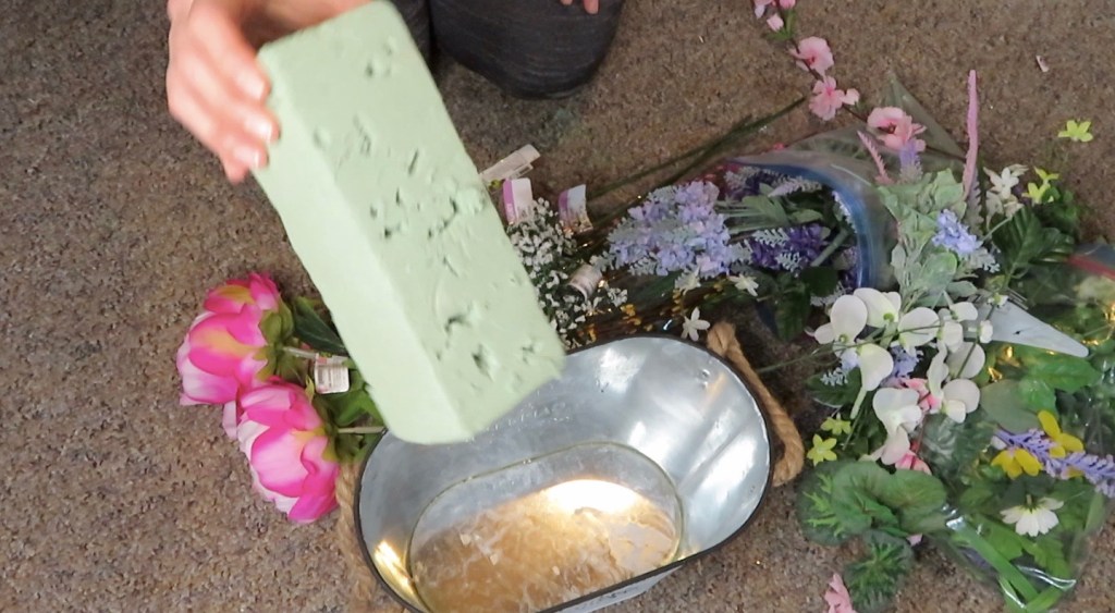 Next you need to pick up some floral foam or styrofoam squares. These can be found in both stores.