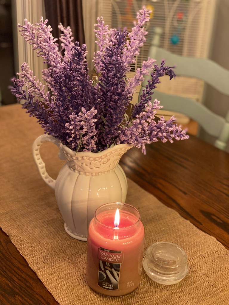 Over in my dinette I included a bit more color but still kept if very simple. As you can see I am using mostly green and white decor with hint of wood for different texture and lots of galvanized metal. I am really enjoying this style. For color I am adding lavender. I always loved decorating with lavender during Winter months. One thing that I would love to add to my decor through out the house is some wicker planter with most likely fake plants but I am open to some real ones just not sure if my puppies would eat those ( I currently have a 11 month old and 11 week old puppy).