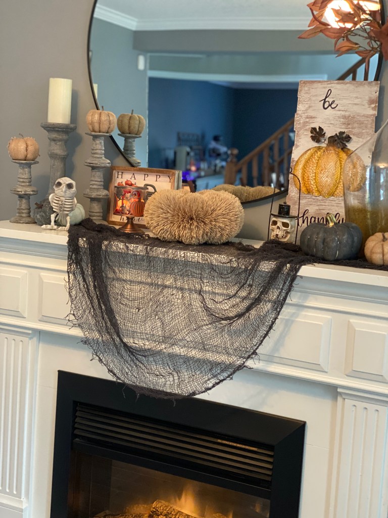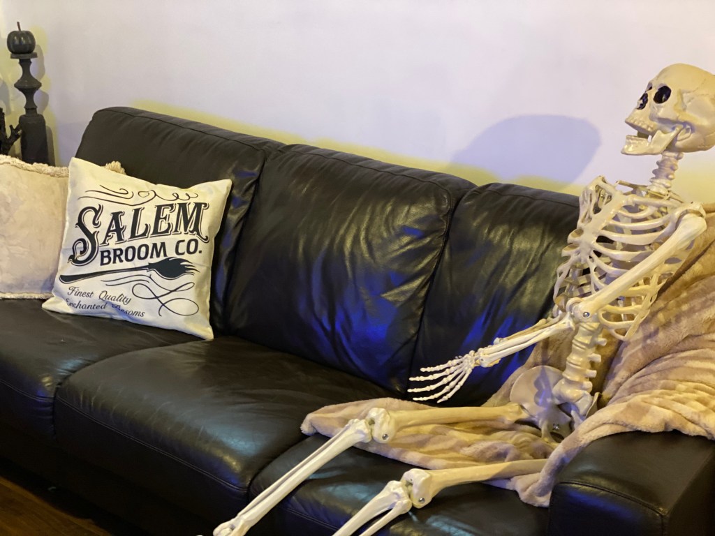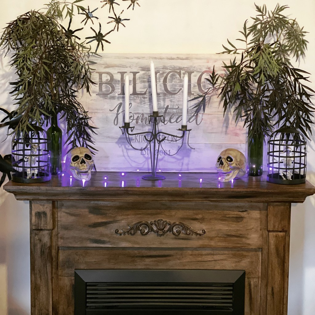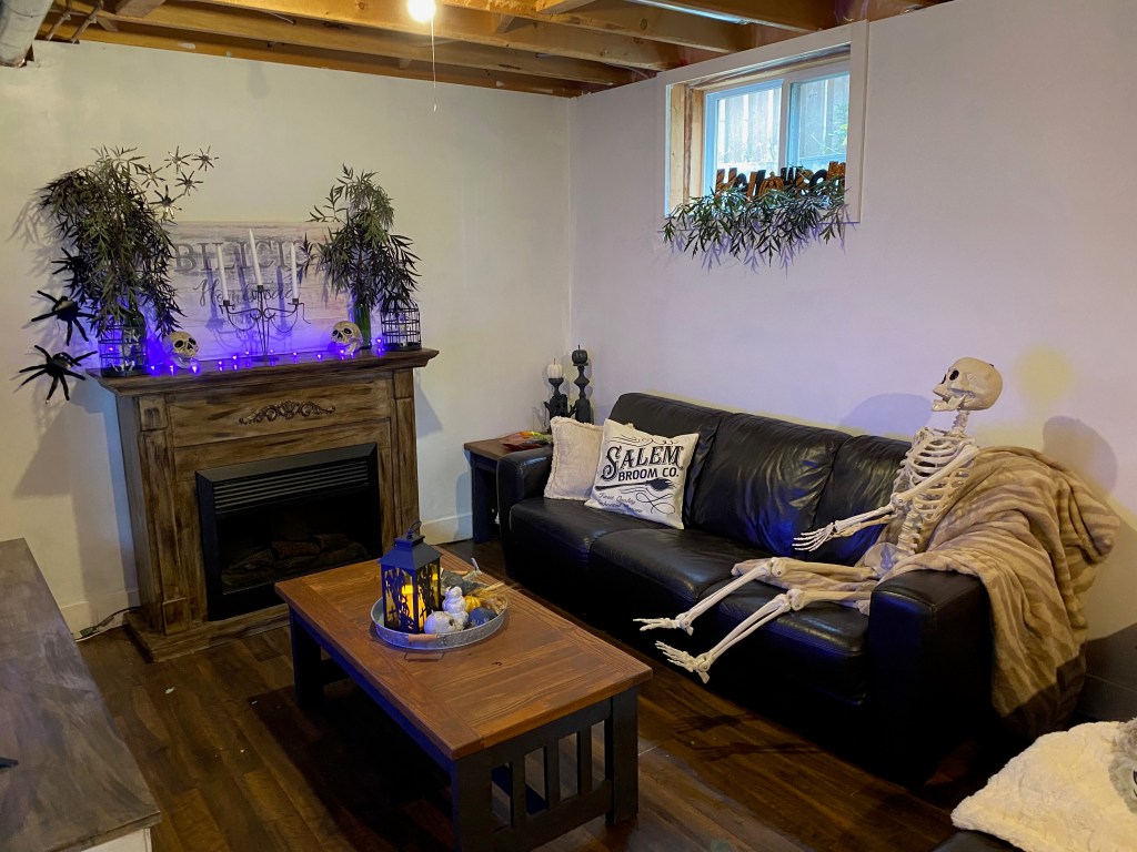 I just love how awesome this turned out and mostly on the budget. The Skeleton was my most expensive piece and I got him from Spirit Halloween. He was around $70.00 CND. The rest of the decor is either my DIY or from Dollar Store.