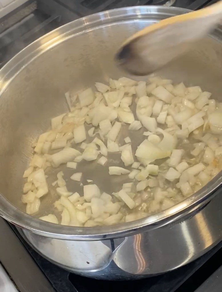 In a large pot, heat the lard over medium heat. Add the chopped onion and sauté until it becomes soft and translucent, about 5-7 minutes.