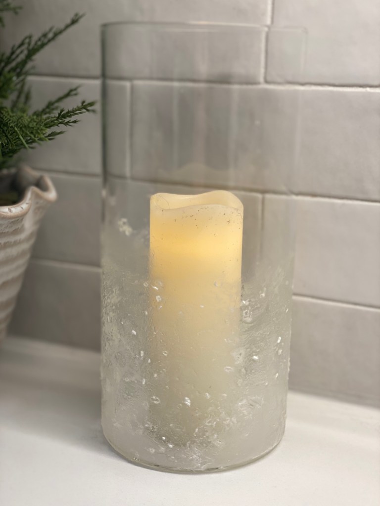 3. The $95 Crate & Barrel Seeded Glass Hurricane (My DIY Experiment!) I love the texture of seeded glass, and Crate & Barrel has a beautiful hurricane vase that inspired me. I experimented with a mix of Mod Podge and Epsom salt to try and recreate that look on a dollar store vase. While it didn’t turn out exactly as I envisioned (I’m always honest with you!), I still wanted to show you the process and the end result. Sometimes, DIY is about the journey and learning along the way!