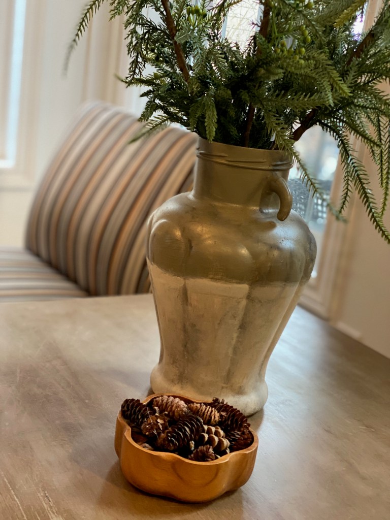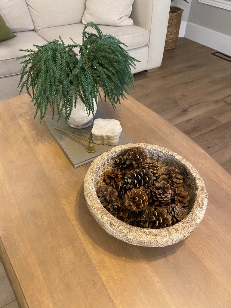 Pine stems with pinecones are one of my favorite ways to add instant winter texture and warmth to a space. The mix of soft needles and natural pinecones brings in that cozy, woodsy feel that works beautifully well beyond Christmas. I love using these stems in smaller vases on shelves, side tables, or tucked into built-ins, especially when paired with neutral vessels like stoneware, ceramic, or aged brass. The pinecones add visual weight and interest without feeling heavy, making these stems perfect for winter styling when you want something natural and grounded but still simple and elegant. They also layer beautifully with other greenery, like eucalyptus or cedar, to create a collected, lived-in look.